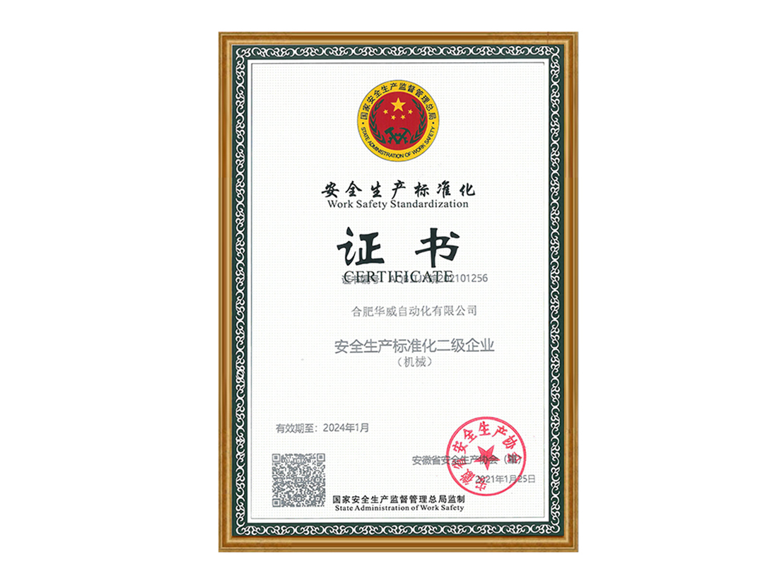 安全生產(chǎn)標(biāo)準(zhǔn)化二級(jí)企業(yè)