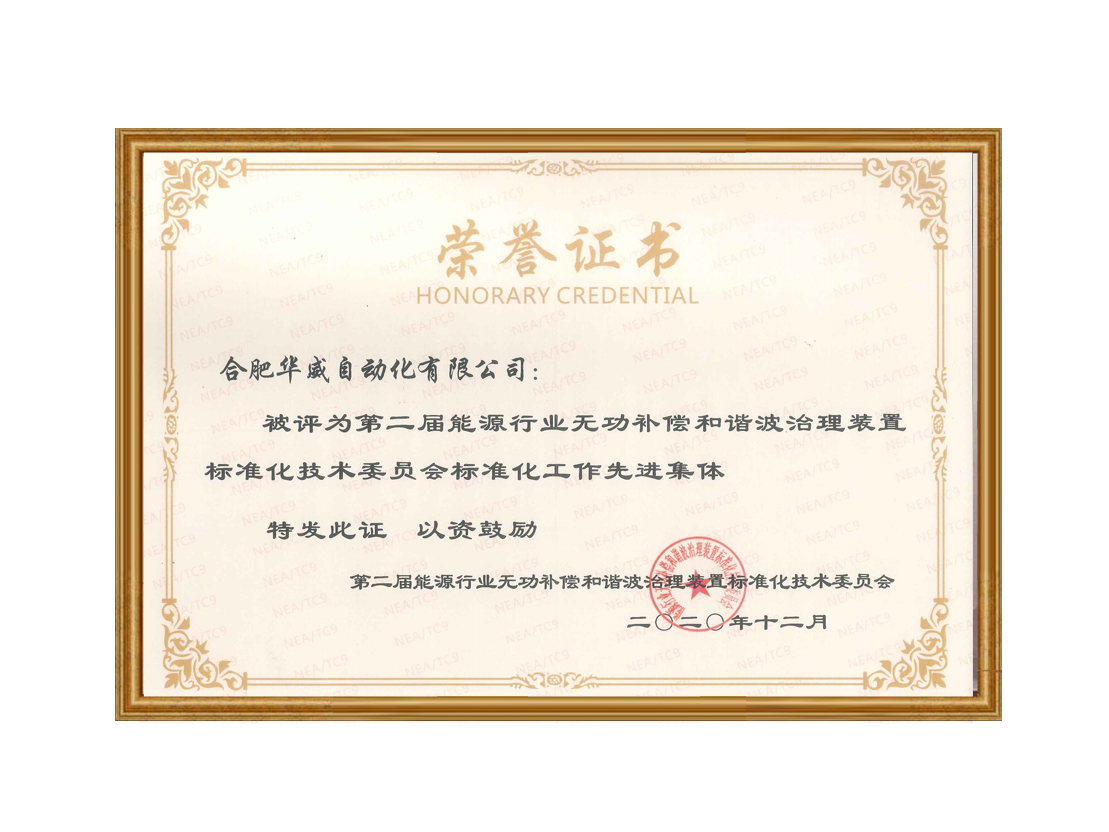 第二屆能源行業(yè)無功補(bǔ)償和諧波治理榮譽(yù)證書